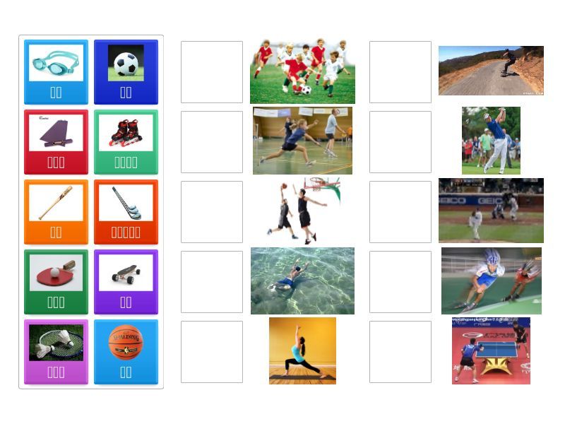 籃球, 球棒, 羽毛球, 高爾夫球桿, 桌球拍, 瑜珈墊, 足球, 滑板, 蛙鏡, 直排輪鞋,