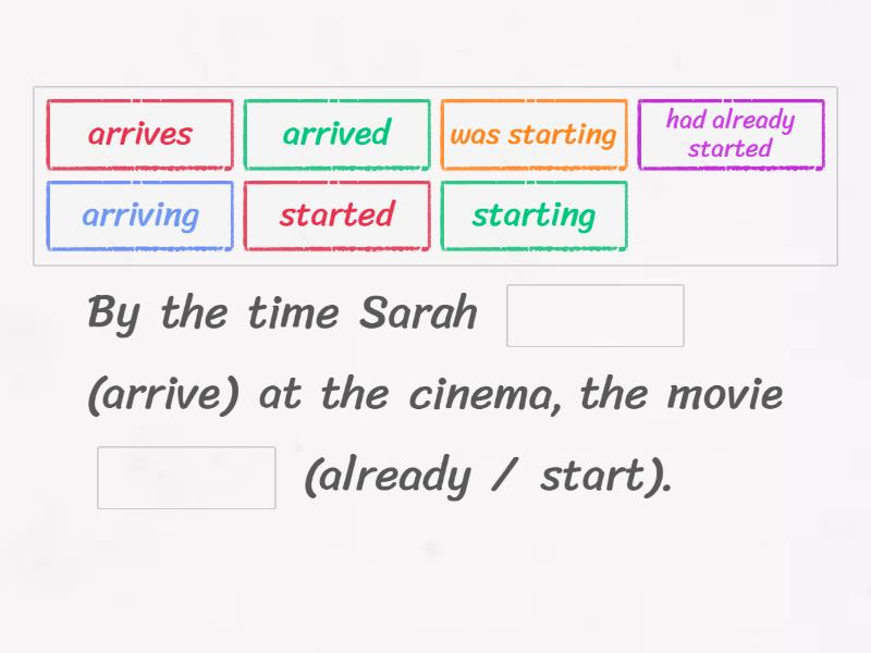 By the time Sarah ____ (arrive) at the cinema, the movie ____ (already / start). When the teacher ____ (enter) the classroom, the students ____ (already / begin) their test. He ____ (not / realize) that he ____ (lose) his wallet until he ____ (get) home. The restaurant ____ (close) by the time they ____ (arrive) there. By the time the firefighters ____ (arrive), the house ____ (burn down) completely.