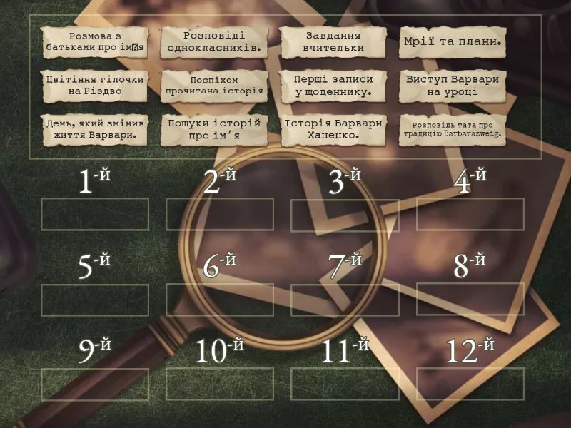 Послідовність подій в повісті Дзвінки Матіяш «Мене звати Варвара»