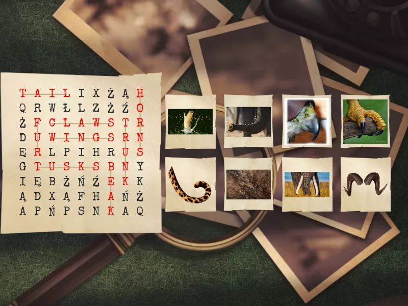 tusks, trunk, wings, beak, horns, fur, tail, claws,