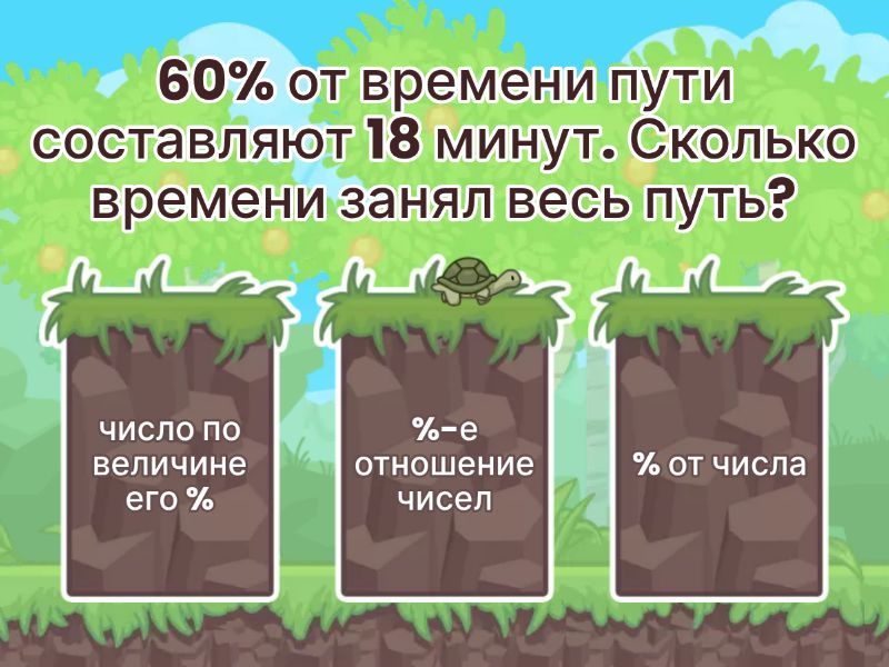 1) 10% от суммы денег составляют 50 рублей. Какова вся сумма? a) % от числа b) число по величине его % c) %-е отношение чисел 2) 25% от длины веревки составляют 8 метров. Какова длина всей веревки? a) % от числа b) число по величине его % c) %-е отношение чисел 3) 1% от стоимости телефона составляет 30 рублей. Какова цена телефона? a) % от числа b) число по величине его % c) %-е отношение чисел 4) 15% от массы арбуза составляют 3 кг. Какова масса всего арбуза? a) % от числа b) число по величине его % c) %-е отношение чисел 5) 60% от времени пути составляют 18 минут. Сколько времени занял весь путь? a) % от числа b) число по величине его % c) %-е отношение чисел 6) 5% от количества страниц в книге составляют 10 страниц. Сколько всего страниц в книге? a) % от числа b) число по величине его % c) %-е отношение чисел 7) Из 20 учеников класса 4 человека учатся без троек. Сколько процентов учащихся учится без троек? a) % от числа b) число по величине его % c) %-е отношение чисел 8) Из 50 деталей 5 оказались бракованными. Сколько процентов деталей бракованные? a) % от числа b) число по величине его % c) %-е отношение чисел 9) В коробке 40 конфет. 10 из них — шоколадные. Сколько процентов конфет составляют шоколадные? a) % от числа b) число по величине его % c) %-е отношение чисел 10) Маша прочитала 15 страниц из 60. Сколько процентов книги она прочитала? a) % от числа b) число по величине его % c) %-е отношение чисел 11) Из 25 выстрелов 20 попали в цель. Каков процент попаданий? a) % от числа b) число по величине его % c) %-е отношение чисел 12) В классе 12 девочек и 18 мальчиков. Сколько процентов класса составляют девочки? a) % от числа b) число по величине его % c) %-е отношение чисел 13) В классе 30 учеников. 10% из них учатся на отлично. Сколько отличников в классе? a) % от числа b) число по величине его % c) %-е отношение чисел 14) Цена книги 60 рублей. Скидка составляет 25%. Сколько рублей составит скидка? a) % от числа b) число по величине его % c) %-е отношение чисел 15) В пачке 80 листов бумаги. Мальчик использовал 5% листов. Сколько листов он использовал? a) % от числа b) число по величине его % c) %-е отношение чисел 16) Рабочий должен был изготовить 40 деталей. Он перевыполнил план на 15%. На сколько деталей больше он изготовил? a) % от числа b) число по величине его % c) %-е отношение чисел 17) В магазин привезли 60 кг яблок. В первый день продали 30% яблок. Сколько килограммов яблок продали? a) % от числа b) число по величине его % c) %-е отношение чисел 18) Билет в кино стоит 20 рублей. Для школьников скидка 50%. Сколько стоит билет для школьника? a) % от числа b) число по величине его % c) %-е отношение чисел 19) В саду растет 20 яблонь. 75% из них — молодые деревья. Сколько молодых яблонь в саду? a) % от числа b) число по величине его % c) %-е отношение чисел 20) Турист прошел 12 км, что составило 60% всего маршрута. Какова длина всего маршрута? a) % от числа b) число по величине его % c) %-е отношение чисел