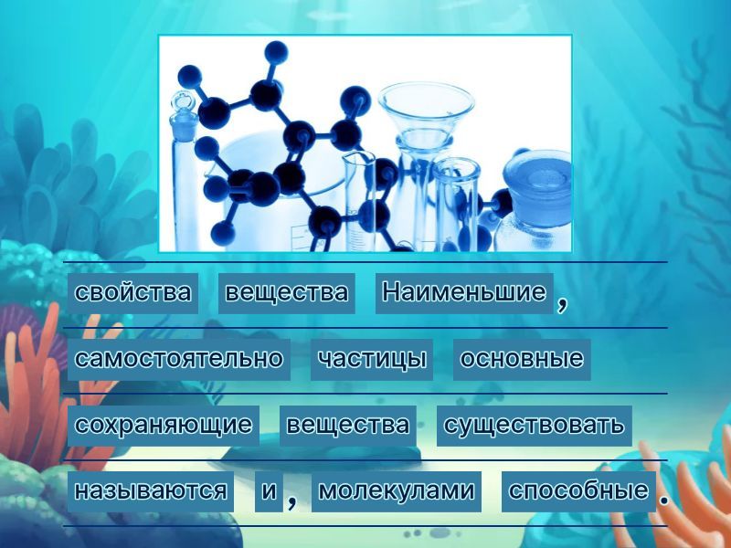 Наименьшие частицы вещества, способные существовать самостоятельно и сохраняющие основные свойства вещества, называются молекулами., Беспорядочное движение частиц вещества, зависящее от степени нагретости вещества, называют тепловым., Явление взаимного проникновения веществ друг в друга называют диффузией., Температура определяет степень нагретости тела., Хаотичность движения и отсутствие взаимодействия частиц при движении друг относительно друга приводит к тому, что газы не сохраняют ни объёма, ни формы., Изменение размеров тела при его нагревании называется тепловым расширением., Принцип действия термометра основан на тепловом расширении вещества., Сохранение формы и объёма твёрдыми телами указывает на то, что притяжение их частиц сильнее, чем частиц жидкости., Тепловое расширение различных жидкостей и различных твёрдых тел неодинаково., Молекулы (атомы) в твёрдых веществах притягиваются друг к другу.,