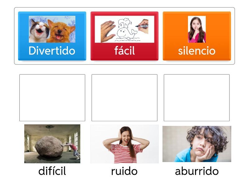Divertido - aburrido, silencio - ruido, fácil - difícil,