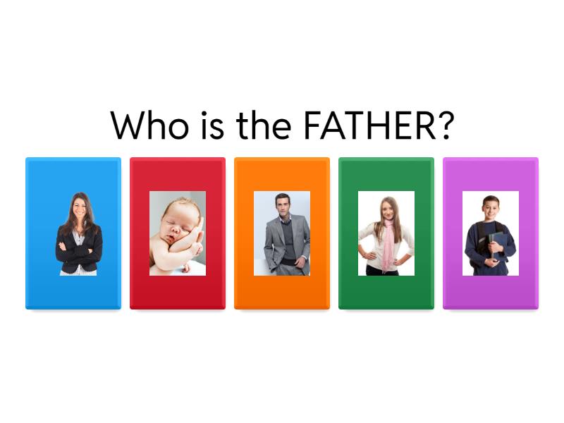1) Who is the FATHER? a) b) c) d) e) 2) Who is the MOTHER? a) b) c) d) e) 3) Who is the SISTER? a) b) c) d) e) 4) Who is the BROTHER? a) b) c) d) e) 5) Who is the BABY? a) b) c) d) e)