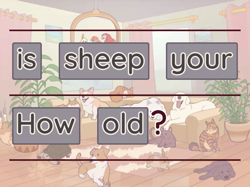 How old is your dog?, How old is your cat?, How old is your snake?, How old is your spider?, How old is your goat?, How old is your sheep?, How old is your frog?, How old is your duck?, How old is your fish?,