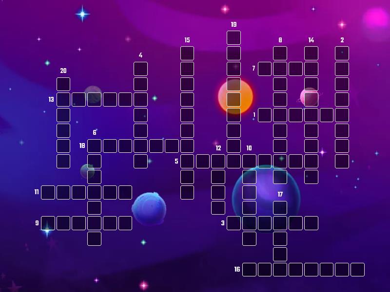 Метеор - Сгорающее в атмосфере мелкое небесное тело, так называемая «падающая звезда»., Астероид - Относительно небольшое небесное тело Солнечной системы, движущееся по орбите вокруг Солнца., Комета - Это небесное тело может иметь хвост из газа и пыли., Планета - Небесное тело, вращающееся по орбите вокруг звезды, имеющее форму, близкую к шарообразной., Галактика - Система из звёзд и звёздных скоплений, межзвёздного газа и пыли, и тёмной материи., Спутник - Небесное тело, обращающееся вокруг планеты., Пояс - Скопление астероидов между орбитами Марса и Юпитера имеет эту форму., Созвездие - Группа звезд, которые образуют знакомые нам буквы и фигуры., Эллипс - Орбита движения планет., Космос - Относительно пустые участки Вселенной, которые лежат вне границ атмосфер небесных тел., Плутон - Самая известная карликовая планета Солнечной системы., Луна - Спутник Земли., Звезда - Массивный газовый шар, излучающий свет и удерживаемый силами собственной гравитации и внутренним давлением., Вселенная - Не имеющее чёткого определения понятие, весь мир с космосом и небесными телами., Космология - Раздел астрономии, изучающий свойства и эволюцию Вселенной в целом., Затмение - Процесс перекрывания светила другим небесным телом., Зенит - Точка небесной сферы, в которой светило имеет наибольшую высоту., Светило - Источник видимого излучения., Атмосфера - Воздушная оболочка Земли., Азимут - Угол между направлением на север и предмет.,