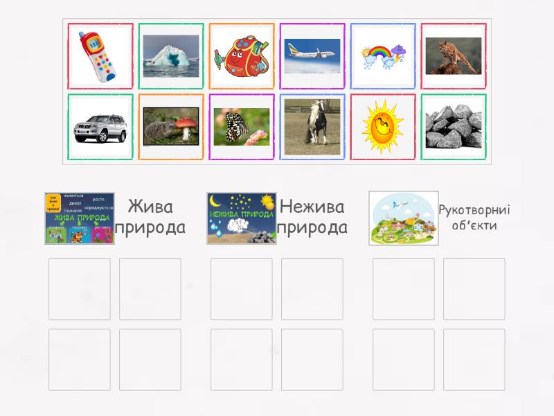 Жива природа: , , , , Нежива природа: , , , , Рукотворниі об'єкти: , , , ,