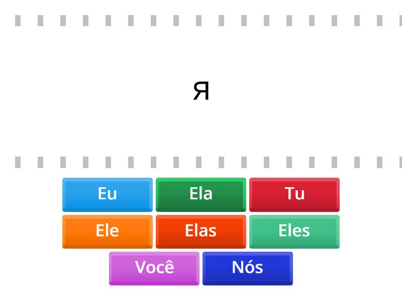 Eu - я, Tu - ты, Ele - он, Ela - она, Você - ты (вежливое), Nós - мы, Eles - они (мальчики), Elas - они (девочки),
