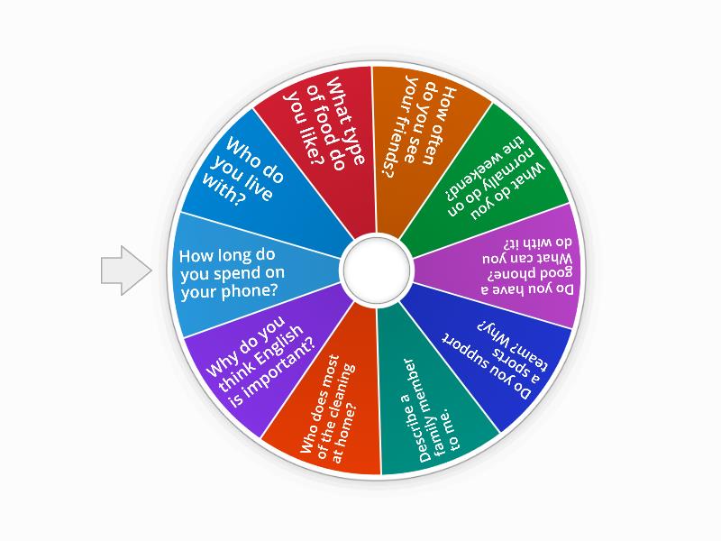 1) Who do you live with? 2) What type of food do you like? 3) How often do you see your friends? 4) What do you normally do on the weekend? 5) Do you have a good phone? What can you do with it? 6) Do you support a sports team? Why? 7) Describe a family member to me. 8) Who does most of the cleaning at home? 9) Why do you think English is important? 10) How long do you spend on your phone?
