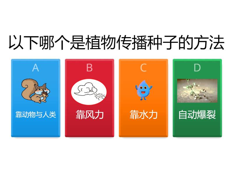 1) 以下哪个是植物传播种子的方法 a) 靠动物与人类 b) 靠风力 c) 靠水力 d) 自动爆裂 2) 以上的植物靠___________来传播 a) 动物与人类 b) 风力 c) 水力 d) 自动爆裂 3) 为什么以上植物 靠动物与人类 传播种子 a) 外皮鲜艳,果肉香甜 b) 种子轻盈,长有薄翼或呈伞状的结构 c) 外皮不透水,内部有纤维层或气室 d) 会变干和自动爆裂 4) 以上的植物靠___________来传播 a) 动物与人类 b) 风力 c) 水力 d) 自动爆裂 5) 为什么以上植物 靠动物与人类 传播种子 a) 外皮鲜艳,果肉香甜 b) 种子轻盈且长有钩刺 c) 外皮不透水,内部有纤维层或气室 d) 会变干和自动爆裂 6) 以上的植物靠___________来传播 a) 动物与人类 b) 风力 c) 水力 d) 自动爆裂 7) 为什么以上植物 靠风力 传播种子 a) 外皮鲜艳,果肉香甜 b) 种子轻盈且长有钩刺 c) 外皮不透水,内部有纤维层或气室 d) 种子轻盈,长有薄翼或呈伞状的结构 8) 以上的植物靠___________来传播 a) 动物与人类 b) 风力 c) 水力 d) 自动爆裂 9) 为什么以上植物 靠水力 传播种子 a) 外皮鲜艳,果肉香甜 b) 种子轻盈且长有钩刺 c) 外皮不透水,内部有纤维层或气室 d) 会变干和自动爆裂 10) 以上的植物靠___________来传播 a) 动物与人类 b) 风力 c) 水力 d) 自动爆裂 11) 为什么以上植物 靠自动爆裂 传播种子 a) 外皮鲜艳,果肉香甜 b) 会变干和自动爆裂 c) 外皮不透水,内部有纤维层或气室 d) 种子轻盈且长有钩刺