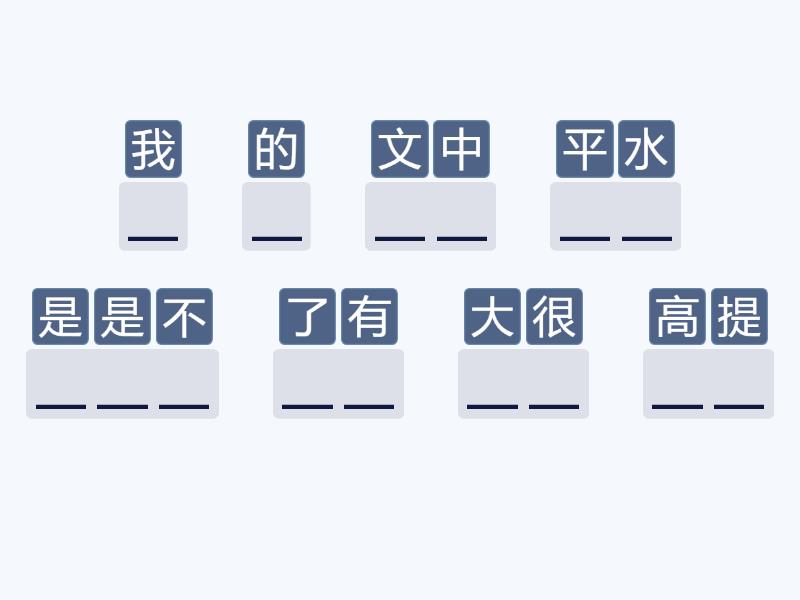 我 的 中文 水平 是不是 有了 很大 提高, 你 是不是 去 中国 旅游, 亮亮 是不是 去 北京 学 中文, 你 的 妈妈 是不是 医生, 你 的 中文 老师 是不是 中国人,