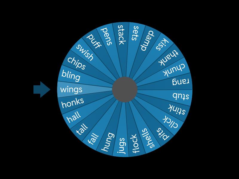 1) bling 2) chips 3) swish 4) puff 5) pens 6) stack 7) sets 8) damp 9) kiss 10) thank 11) chunk 12) rang 13) stub 14) stink 15) click 16) pits 17) shells 18) flock 19) jugs 20) hung 21) fall 22) tall 23) hall 24) honks 25) wings