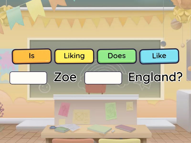 ____ Zoe ____ England? ____ It ____ Today? ____ Zoe ____ music? ____ Zoe ____ her English? ____ the Sun ____ Now?