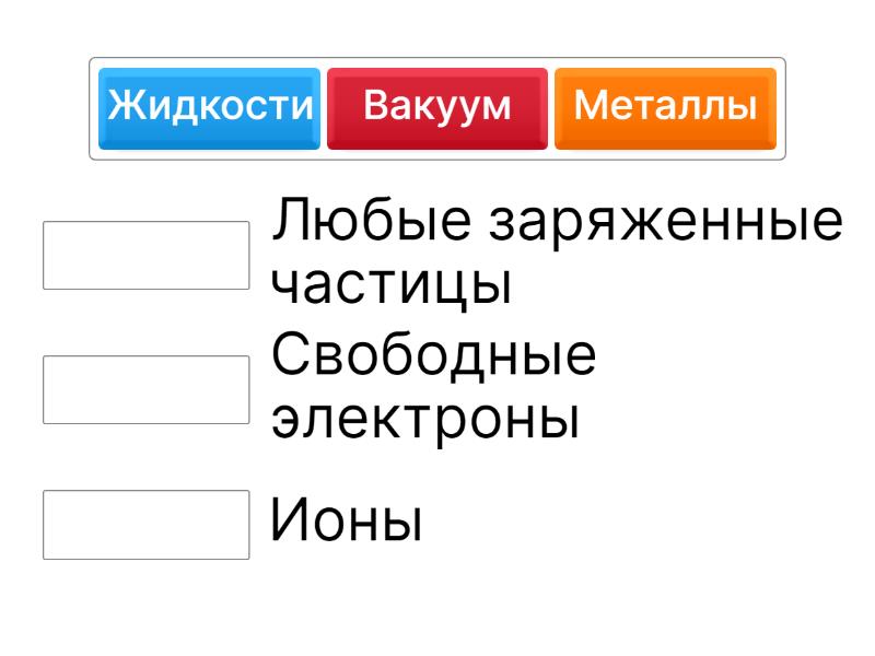 Металлы - Свободные электроны, Жидкости - Ионы, Вакуум - Любые заряженные частицы,