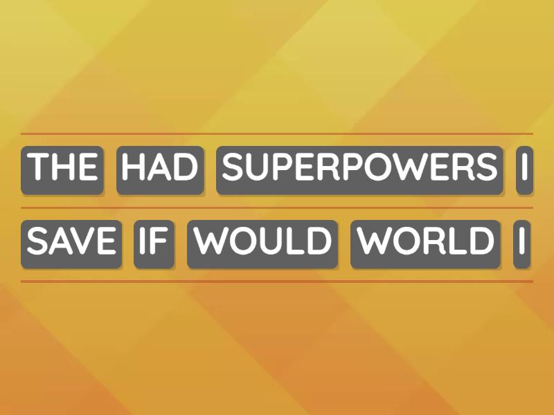 IF I HAD SUPERPOWERS I WOULD SAVE THE WORLD, IF I WERE THE PRESIDENT OF MEXICO I WOULD HELP POOR PEOPLE, IF I COULD TRAVEL ON TIME I WOULD VISIT THE ANCIENT PYRAMIDS, IF I TRAVELED TO THE PAST I WOULD AVOID THE SPANISH CONQUEST, IF I WERE A MILLIONAIRE I WOULD BUY A BIG HOUSE , IF I KNEW JAPANESE I WOULD TRAVEL TO JAPAN, IF I HAD A ROBOT I WOULD BE HAPPY, IF MARIA WERE FROM FRANCE SHE WOULD SPEAK FRENCH, I WOULDN´T GO TO SCHOOL IF LUIS WASN´T MY FRIEND, IF JERONIMO ATE A LOT OF SUGAR HE WOULDN´T BE HEALTHY,