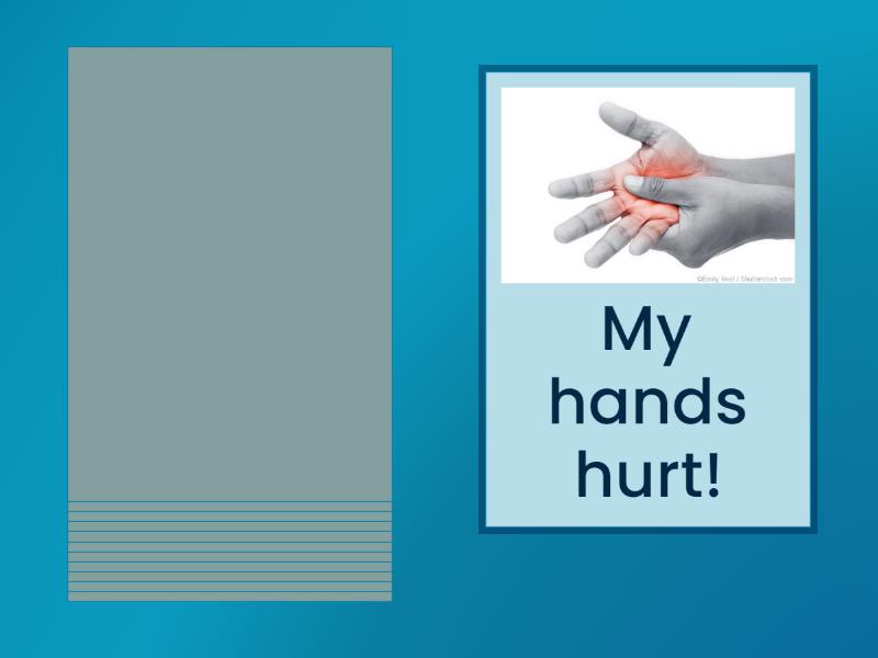 Doctor, Help me!, My toes hurt!, Feel better, My feet hurt!, My legs hurt!, Next!, My tummy hurts!, My arms hurt!, My hands hurt!, My fingers hurt!, My head hurts!.
