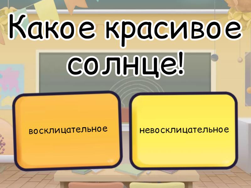 1) Какое красивое солнце! a) восклицательное b) невосклицательное 2) Сегодня солнце светит очень ярко. a) восклицательное b) невосклицательное 3) Какой вкусный пирог испекла бабушка! a) восклицательное b) невосклицательное 4) Бабушка испекла вкусный пирог. a) восклицательное b) невосклицательное 5) Ура, каникулы начались! a) восклицательное b) невосклицательное 6) Завтра начинаются каникулы. a) восклицательное b) невосклицательное 7) Ого, какая большая собака! a) восклицательное b) невосклицательное 8) Во двор выбежала большая собака. a) восклицательное b) невосклицательное 9) Какой сильный ветер сегодня! a) восклицательное b) невосклицательное 10) Сегодня дует сильный ветер. a) восклицательное b) невосклицательное