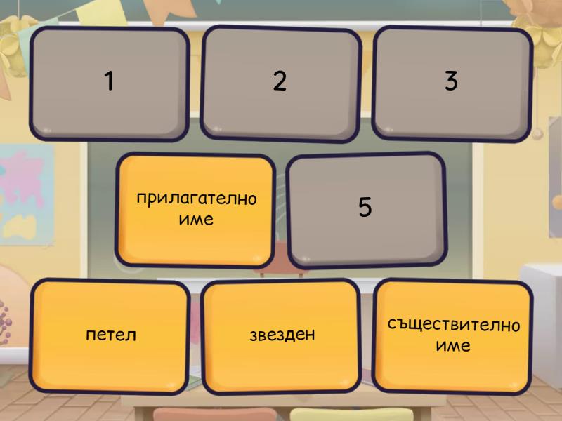 петел - съществително име, звезден - прилагателно име, обуват - глагол, вие - лично местоимение,