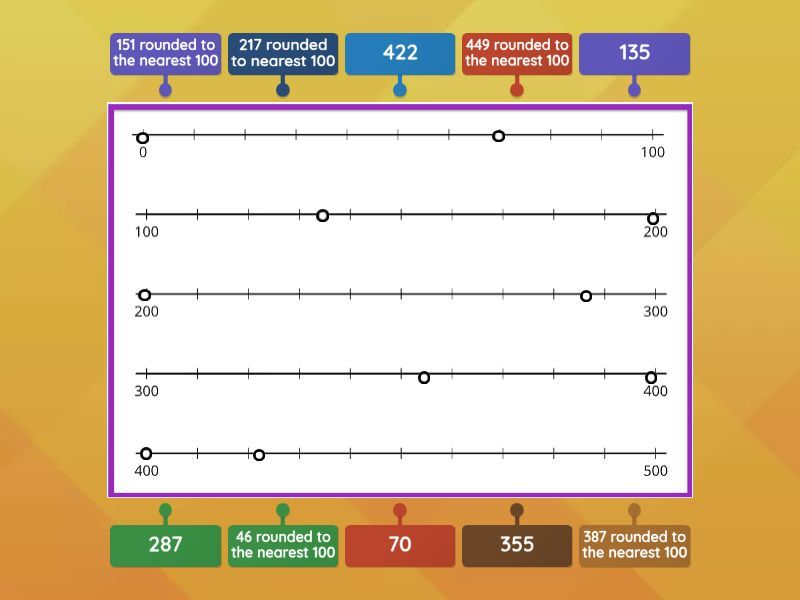 287, 135, 70, 422, 355, 217 rounded to nearest 100, 387 rounded to the nearest 100, 46 rounded to the nearest 100, 151 rounded to the nearest 100, 449 rounded to the nearest 100.