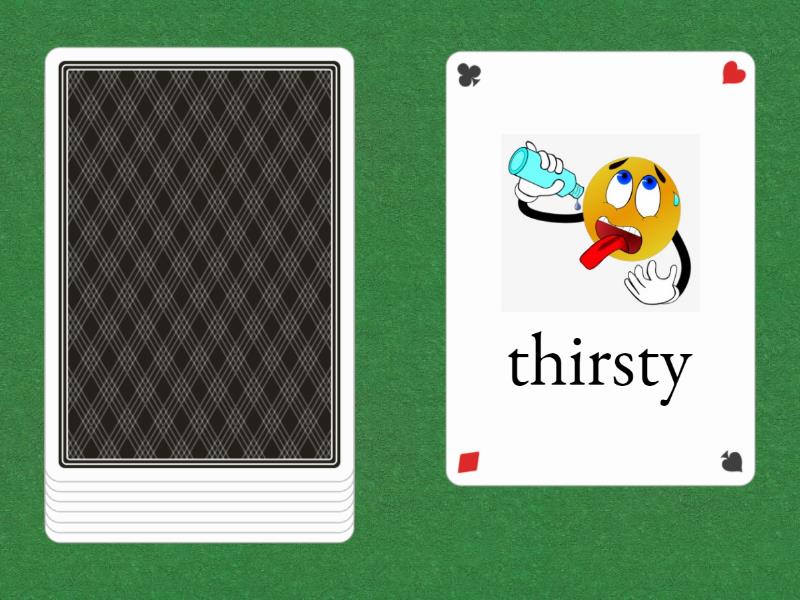 scared, hungry, tired, cold, hot, happy, thirsty, sad.
