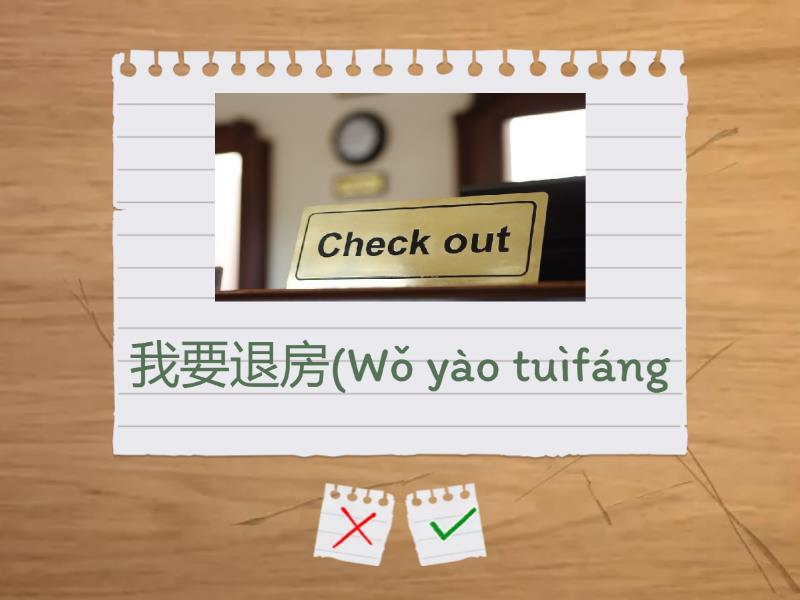 酒店 - Jiǔdiàn - Отель, 我想预订一个房间。 (Wǒ xiǎng yùdìng yīgè fángjiān.) - Я хочу забронировать номер., 多少钱一晚? (Duōshǎo qián yī wǎn? - Сколько стоит номер за ночь?, 早餐 - Zǎocān - 早餐在哪儿? (Zǎocān zài nǎr?) – Где завтрак?, 早餐几点开始? (Zǎocān jǐ diǎn kāishǐ?) - Во сколько начинается завтрак?, 游泳池在哪里? (Yóuyǒngchí zài nǎlǐ?) - Где находится бассейн?, 健身房在几楼? (Jiànshēnfáng zài jǐ lóu?) - На каком этаже тренажёрный зал?, Wi-Fi密码是什么? (Wi-Fi mìmǎ shì shénme?) - Какой пароль от Wi-Fi?, 请给我钥匙。 (Qǐng gěi wǒ yàoshi.) - Дайте мне ключ, пожалуйста., 我的房间号是… (Wǒ de fángjiān hào shì…) - Мой номер комнаты …, 入住 / 退房 (Rùzhù / Tuìfáng) - Заселение / Выезд, 我要入住/(Wǒ yào rùzhù.) - Я хочу зарегистрироваться.(=заселиться в отель), 我要退房(Wǒ yào tuìfáng - Я хочу выселиться с отеля(check-out),