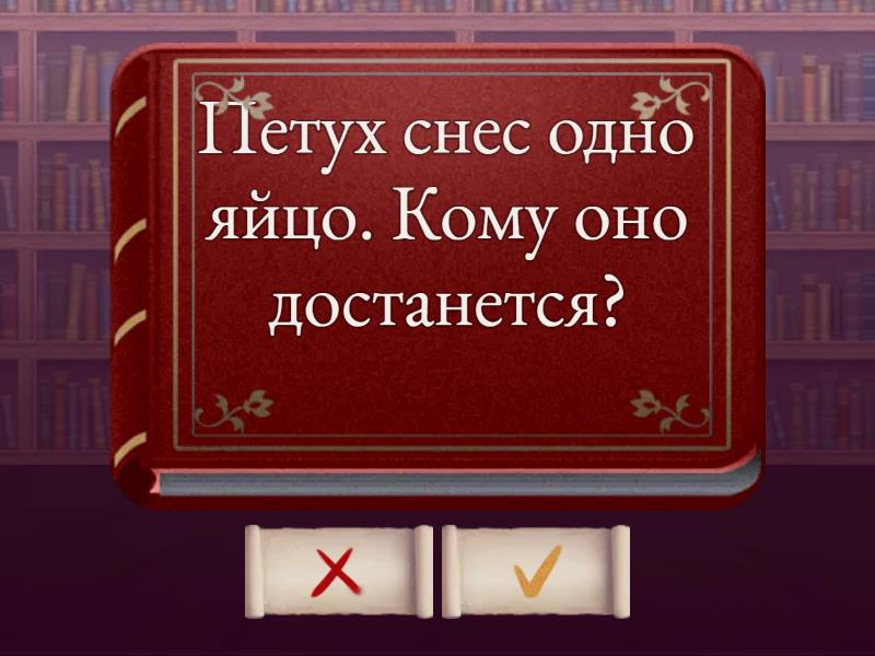 Меня зовут Юра. У моей сестры только один брат. Как зовут брата моей сестры? - Юра, Коля прибежал из школы домой первым, а Оля - второй. Кто бегает быстрее? Кто медленнее? - Коля быстрее, Оля медленнее, Три мальчика Коля, Петя и Ваня по дороге нашли три рубля. Сколько денег нашёл бы Ваня, если бы шёл один? - Три рубля, На подоконнике лежали 3 зеленых помидора, через день они покраснели. Сколько зеленых помидоров осталось? - Ни одного, Что сушит, когда мокнет? - Полотенце, У животного две правые ноги, две левые ноги, две ноги спереди, две ноги сзади. Сколько ног у животного? - 4 ноги, Петух снес одно яйцо. Кому оно достанется? - Никому,