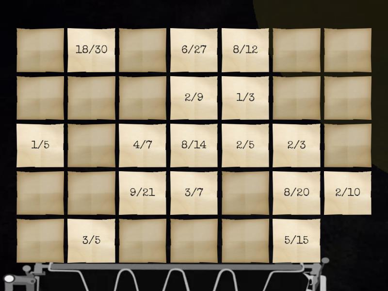 5/15 - 1/3, 6/27 - 2/9, 8/20 - 2/5, 8/12 - 2/3, 8/14 - 4/7, 9/21 - 3/7, 18/30 - 3/5, 2/10 - 1/5, 4/16 - 1/4, 15/42 - 5/12, 12/32 - 3/8, 6/22 - 3/11, 12/15 - 4/5, 14/3 - 4 2/3, 10/5 - 2, 10/9 - 1 1/9, 5/2 - 2 1/2,