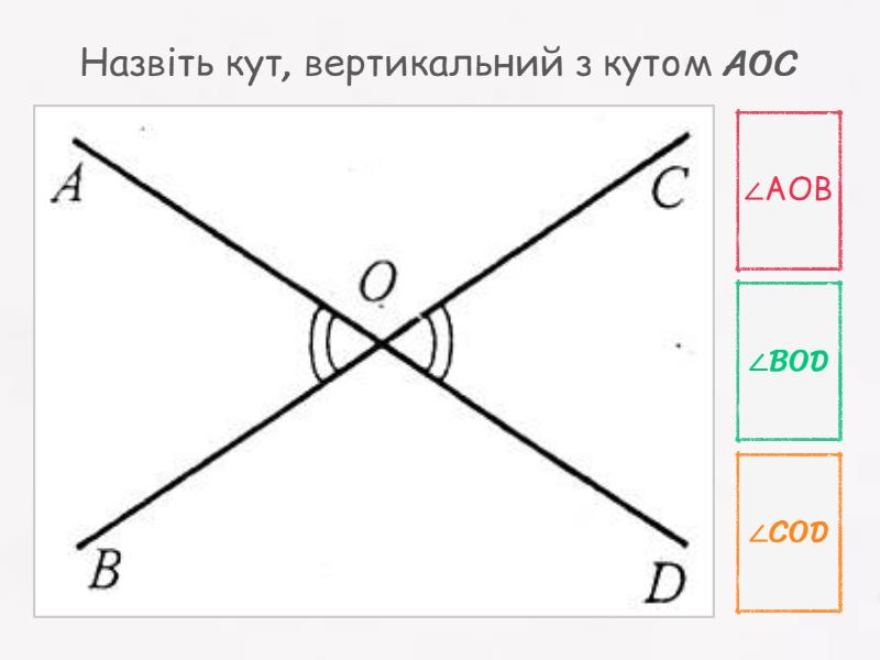 1) Назвіть кут, вертикальний з кутом AOC a) ∠АОВ b) ∠BOD c) ∠COD 2) Знайти градусну міру кута ą a) 60 ∘ b) 100 ∘ c) 80 ∘ 3) Знайти кут 3 a) 146 ∘ b) 54 ∘ c) 34 ∘ 4) Знайти кут КОВ, якщо ∠МОD=110°, ∠АОС=30° a) 40 ∘ b) 140 ∘ c) 110 ∘ 5) Знайти кут суміжний з кутом COM a) ∠CON b) ∠AOC c) ∠MOD 6) Чому дорівнює ∠2? a) 58 ∘ b) 29 ∘ c) 151 ∘