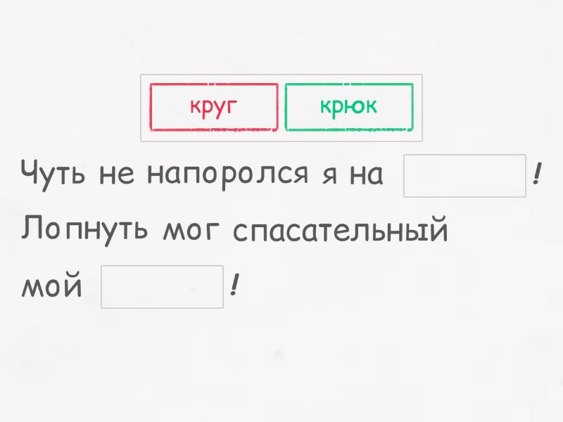 Чуть не напоролся я на ____! Лопнуть мог спасательный мой ____! А правда, что в ____ У кошек лапы ____? За работу я ____, С неохотой я ____! Не спеши как на ____ — Лучше семечек ____!.. Помыты были б ____ — Не пачкали бы ____! Вот мешок, верёвкой ____, А в мешке — огурчик ____!