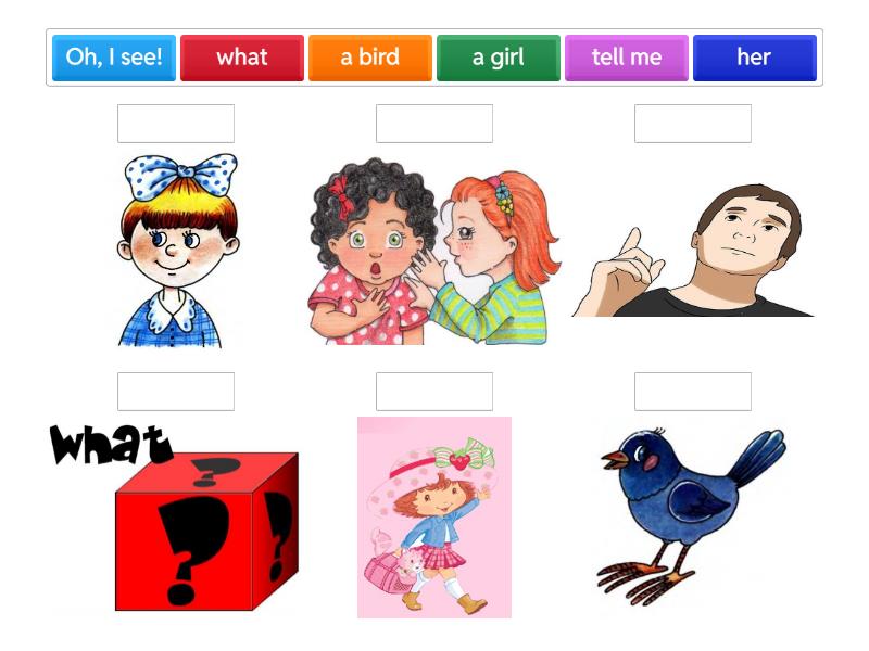 a bird, a girl, tell me, Oh, I see!, what, her,