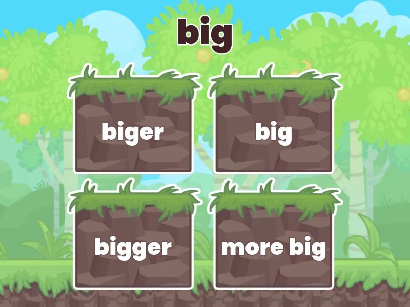 1) big a) biger b) big c) bigger d) more big 2) small a) shorter b) smaller c) bigger d) more 3) tall a) fewer b) taller c) older d) longer 4) short a) longer b) better c) greater d) shorter 5) long a) longger b) longer c) less d) bigger 6) old a) worse b) older c) shorter d) taller 7) fat a) fatter b) fater c) more fat d) fat 8) cute a) cutest b) cuteer c) cute d) cuter 9) busy a) busyer b) busy c) more busy d) busier 10) beautiful a) beautifuler b) beautifuller c) beautiful d) more beautiful 11) good a) longer b) less c) better d) taller 12) bad a) worse b) greater c) older d) fewer