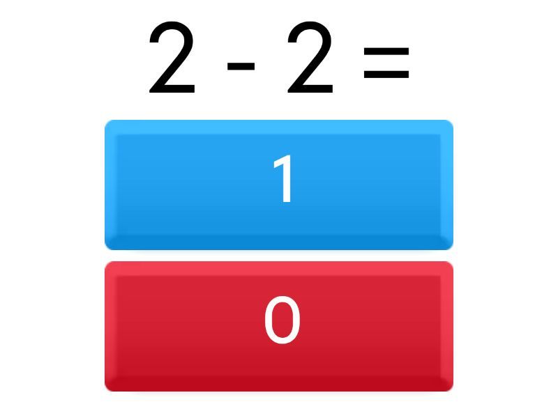 1) 2 - 2 = a) 1 b) 0 2) 5 - ? = 2 a) 1 b) 3 3) 3 + 0 = a) 3 b) 0 4) 4 - 4 = a) 0 b) 1 5) 3+ ? = 4 a) 1 b) 0
