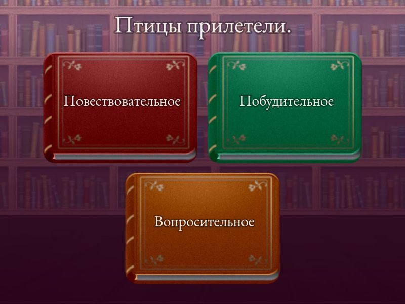 1) Птицы прилетели. a) Повествовательное b) Побудительное c) Вопросительное 2) Принеси, пожалуйста, дневник. a) Повествовательное b) Побудительное c) Вопросительное 3) Золотая осень. a) Повествовательное b) Побудительное c) Вопросительное 4) Давайте играть! a) Повествовательное b) Побудительное c) Вопросительное 5) Учусь писать красиво. a) Повествовательное b) Побудительное c) Вопросительное 6) Куда ты идешь? a) Повествовательное b) Побудительное c) Вопросительное 7) И где это тебя носило? a) Повествовательное b) Побудительное c) Вопросительное 8) Почему ты не выполнил задание? a) Повествовательное b) Побудительное c) Вопросительное 9) Где дневник? a) Повествовательное b) Побудительное c) Вопросительное 10) Садитесь! a) Повествовательное b) Побудительное c) Вопросительное 11) Не отвлекайся. a) Повествовательное b) Побудительное c) Вопросительное 12) У Мити лучшая оценка в классе! a) Повествовательное b) Побудительное c) Вопросительное