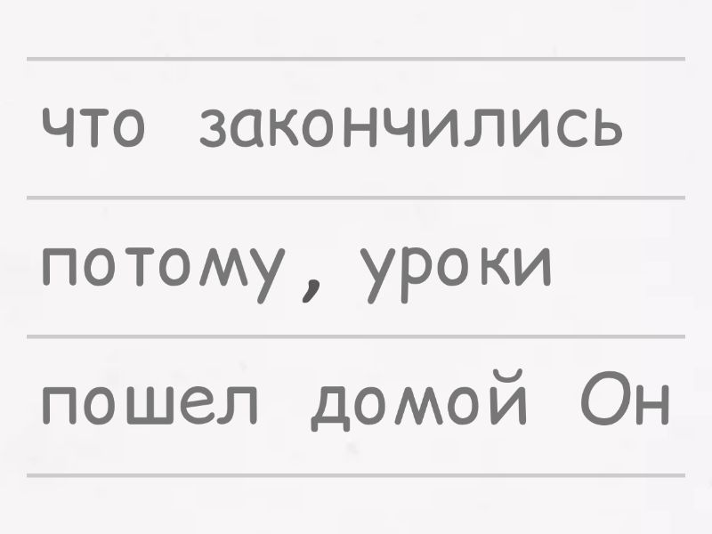 Он пошел домой, потому что уроки закончились, Когда я пришел, она уже спала, Она сказала, что придет завтра, Если мы захотим есть, я закажу доставку еды, Я хотела поехать на работу, но начальник написал, что сегодня выходной,