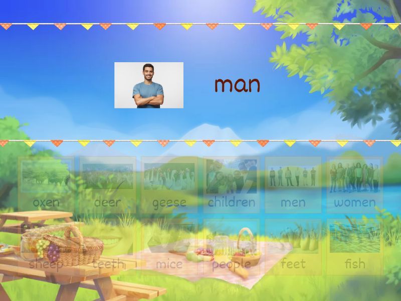 men - man, women - woman, deer - deer, sheep - sheep, oxen - ox, geese - goose, teeth - tooth, feet - foot, people - person, children - child, fish - fish, mice - mouse,
