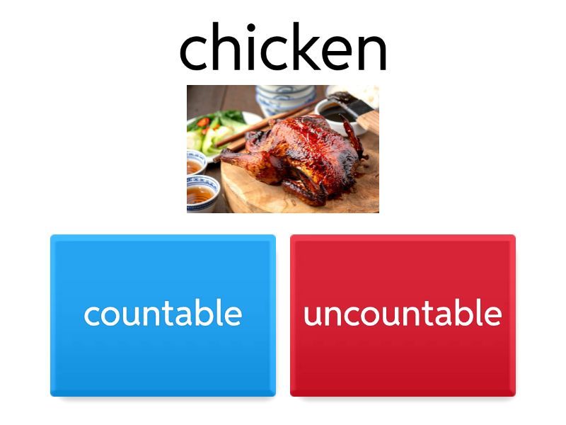 1) chicken a) countable b) uncountable 2) egg a) countable b) uncountable 3) milk a) countable b) uncountable 4) cheese a) countable b) uncountable 5) carrot a) countable b) uncountable 6) biscuit a) countable b) uncountable 7) lettuce a) countable b) uncountable 8) chocolate a) countable b) uncountable 9) juice a) countable b) uncountable 10) tomatoes a) countable b) uncountable 11) onion a) countable b) uncountable 12) lemonade a) countable b) uncountable 13) potatoe a) countable b) uncountable 14) sugar a) countable b) uncountable