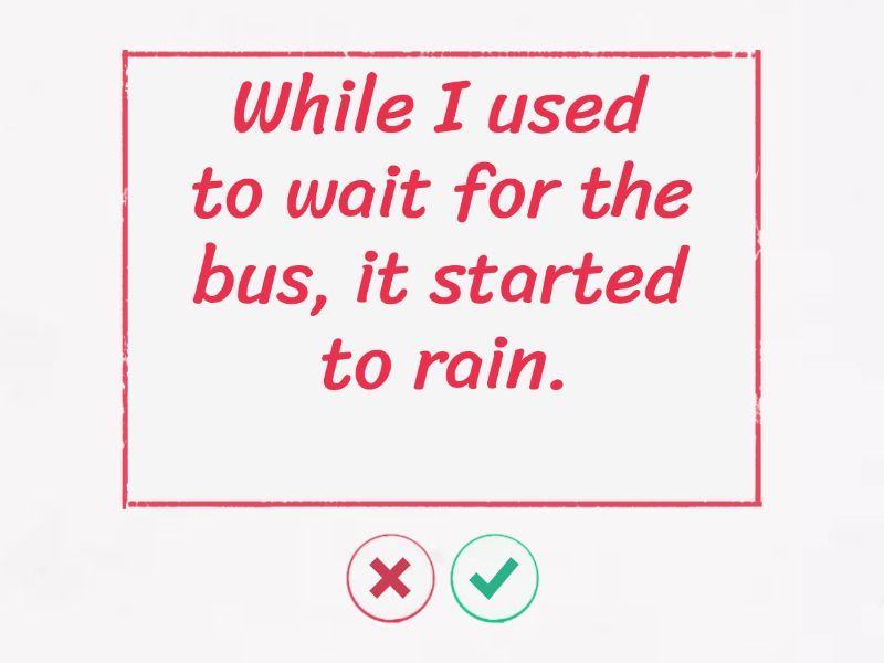 I used to believing in ghosts when I was a child. - used to believe, He was used to play football professionally. - used to play, What did you used to do on weekends? - did you use to do, While I used to wait for the bus, it started to rain. - was waiting, She was growing up in Spain, so she speaks fluent Spanish. - grew up,