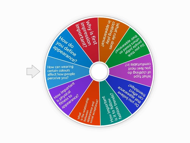 1) How do you define appearance? 2) Why is first impression important? 3) What role does clothing play in appearance? 4) Do you think people judge others based on their appearance? 5) What type of clothing do you feel most comfortable in? 6) Do you believe that appearance can affect friendships? 7) How important is it to follow fashion trends? 8) What is the relationship between appearance and social acceptance? 9) How important is physical fitness to appearance? 10) How can wearing certain colours affect how people perceive you?