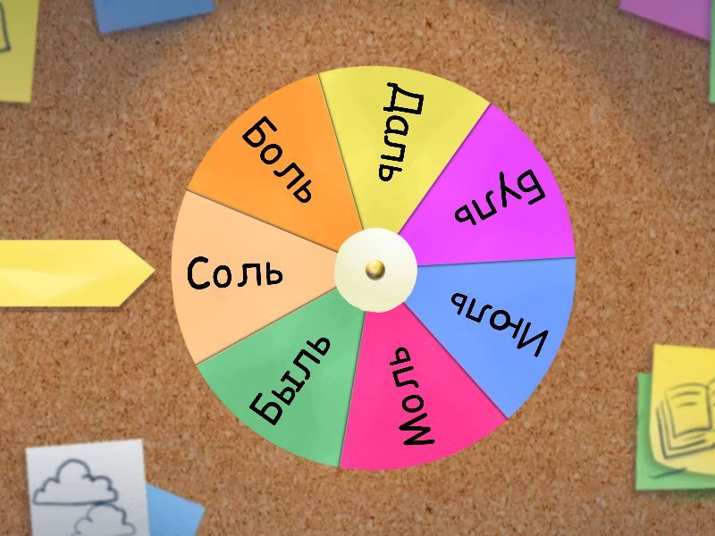 1) Боль 2) Даль 3) Буль 4) Июль 5) Моль 6) Быль 7) Соль