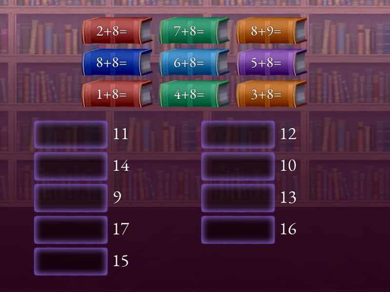 1+8= - 9, 2+8= - 10, 3+8= - 11, 4+8= - 12, 5+8= - 13, 6+8= - 14, 7+8= - 15, 8+8= - 16, 8+9= - 17,