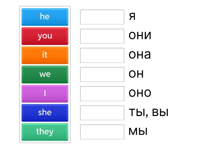 he - он, she - она , it - оно , I - я, you - ты, вы, we - мы , they - они,