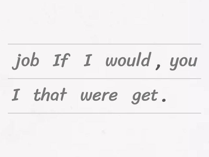 If I were you, I would get that job., If I were younger, I would travel more., If I won the lottery, I would buy a bigger house., If I met my favourite singer, I would take a selfie., If she weren't always late, she would be promoted. , We would be able to buy a better car if you had a better job., My sister would have more money if she didn't buy so many clothes., Karen would phone Peter if she had his phone number., If I had a band, I would play the drums., You would be happier if you had more friends.,