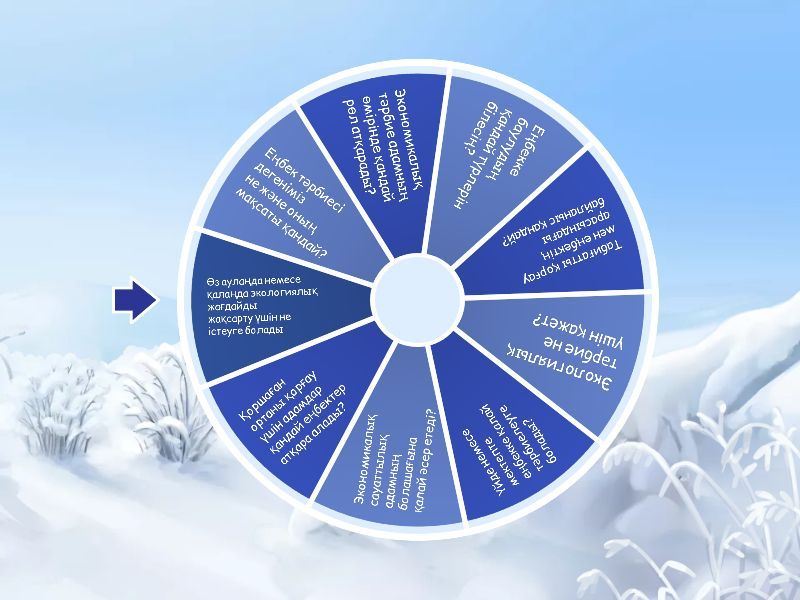1) Еңбек тәрбиесі дегеніміз не және оның мақсаты қандай? 2) Экономикалық тәрбие адамның өмірінде қандай рөл атқарады? 3) Еңбекке баулудың қандай түрлерін білесің? 4) Табиғатты қорғау мен еңбектің арасындағы байланыс қандай? 5) Экологиялық тәрбие не үшін қажет? 6) Үйде немесе мектепте еңбекке қалай тәрбиелеуге болады? 7) Экономикалық сауаттылық адамның болашағына қалай әсер етеді? 8) Қоршаған ортаны қорғау үшін адамдар қандай еңбектер атқара алады? 9) Өз аулаңда немесе қалаңда экологиялық жағдайды жақсарту үшін не істеуге болады