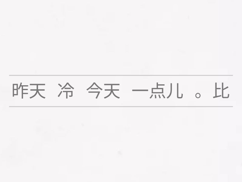 今天 比 昨天 冷 一点儿 。, 这是 我朋友 的 自行车, 不能 借 给 你 。, 孩子们 高兴 地 在 公园里 玩 游戏 。, 他 汉字 写 得 很 漂亮 。, 妈妈 正在 准备 晚饭, 爸爸 在 帮忙 。, 墙上 挂 着 一张 世界 地图 。, 请 把 你的 名字 写 在 这儿 。, 我的 自行车 被 朋友 借 走 了 。, 爸爸 让 我 每天 复习 功课 。,