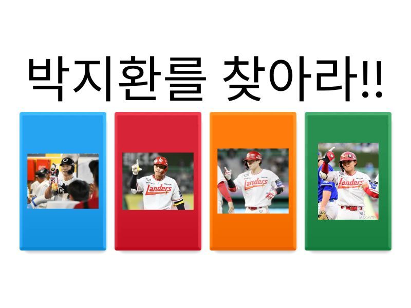 1) 박지환를 찾아라!! a) b) c) d) 2) 랜더스 로고를 찾아라!! (ez 모드) a) b) c) d) 3) 2025년도에 우승한 팀은?? a) LG b) 롯데 c) SSG d) 두산