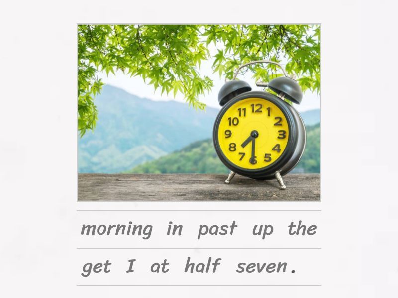 I get up at half past seven in the morning., My brother brushes his teeth before breakfast., We go to school at eight., I tidy my room on Saturdays., Mum makes breakfast in the morning., I do my homework after school., My sister feeds the dog every day., We have lunch at twelve o’clock., I play football with my friends after school., Dad washes the car on Sundays., I help my mum in the kitchen in the evening., We watch TV at half past eight., I go to bed at nine o’clock., On Fridays, I play the guitar after dinner., I read a book before I go to sleep.,