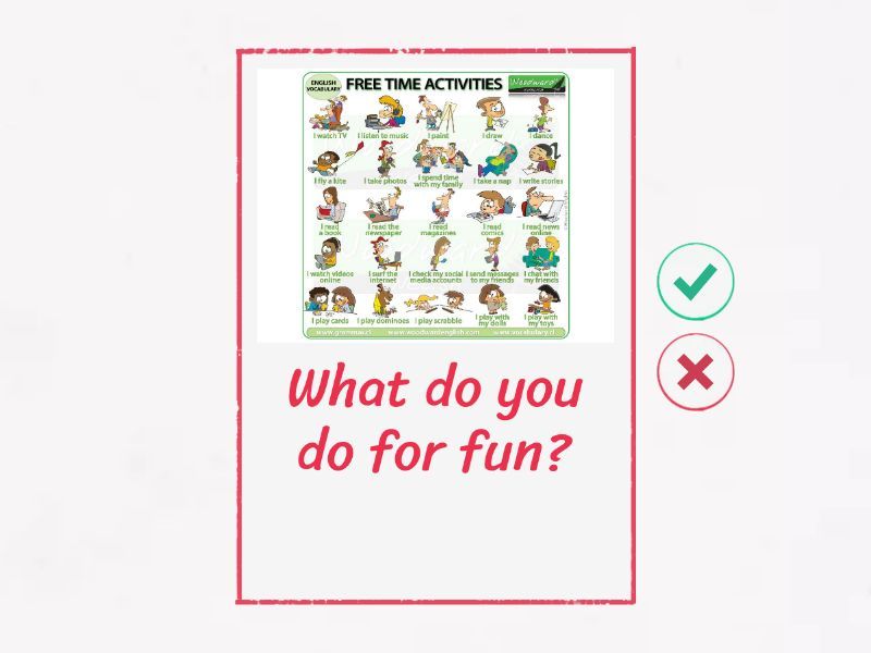 Who do you call if there is a fire?, What do you do for fun? , When do you go to sleep?, Where do we borrow a book from?, Why do we brush our teeth?, How do you ask for a break?, Who is your teacher?, What city do you live in?, When is your birthday?, Where do we buy food?, Why do we go to school?, How old are you?,