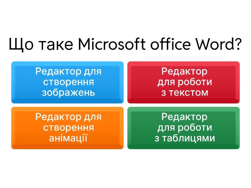 1) Що таке Microsoft office Word? a) Редактор для створення зображень b) Редактор для роботи з текстом c) Редактор для створення анімації d) Редактор для роботи з таблицями 2) Виправлення помилок, внесення змін до тексту - це a) Форматування b) Копіювання c) Переміщення d) Редагування 3) Як позначається програма Microsoft Word a) b) c) d) 4) На яку позначку треба натиснути, щоб виділений текст був жирнішим ніж основний a) b) c) d) 5) На яку позначку треба натиснути, щоб виділений текст був курсивним a) b) c) d) 6) Яка позначка відповідає за колір букв у тексті a) b) c) d) 7) Змінення зовнішнього вигляду тексту - це a) Редагування b) Форматування c) Створеня d) Переміщення 8) Яка клавіша відповідає за перехід на новий рядок a) Shift b) Ctrl c) Enter 9) Що можна зробити за допомогою цих інструментів a) змінити розмір сторінки b) зробити текст виділеним c) змінити назву і номер шрифта d) змінити мову друкування тексту