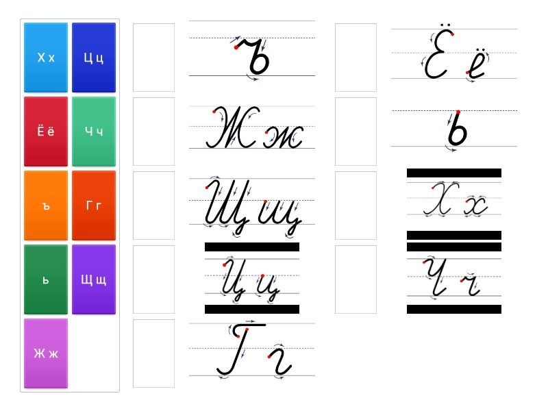 Г г, Ё ё, Ж ж, Х х, Ц ц, Ч ч, Щ щ, ъ, ь,