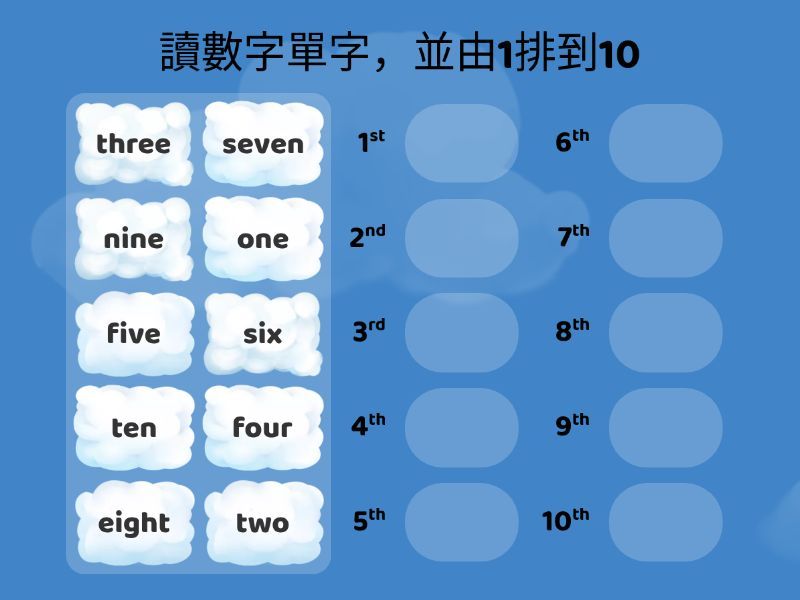 數字1~10:依序排列 Numbers 1-10